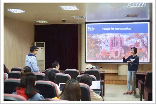 高笑博士为同学们分享了她访问耶鲁大学的经历,着重介绍了耶鲁的住宿制度、创新精神、实践活动等。同时提到耶鲁大学有全美最大的图书馆,拥有开放自由的环境氛围。“广泛的好奇心,多样性和公民意识”是耶鲁大学期待录取的中国学生的特点。