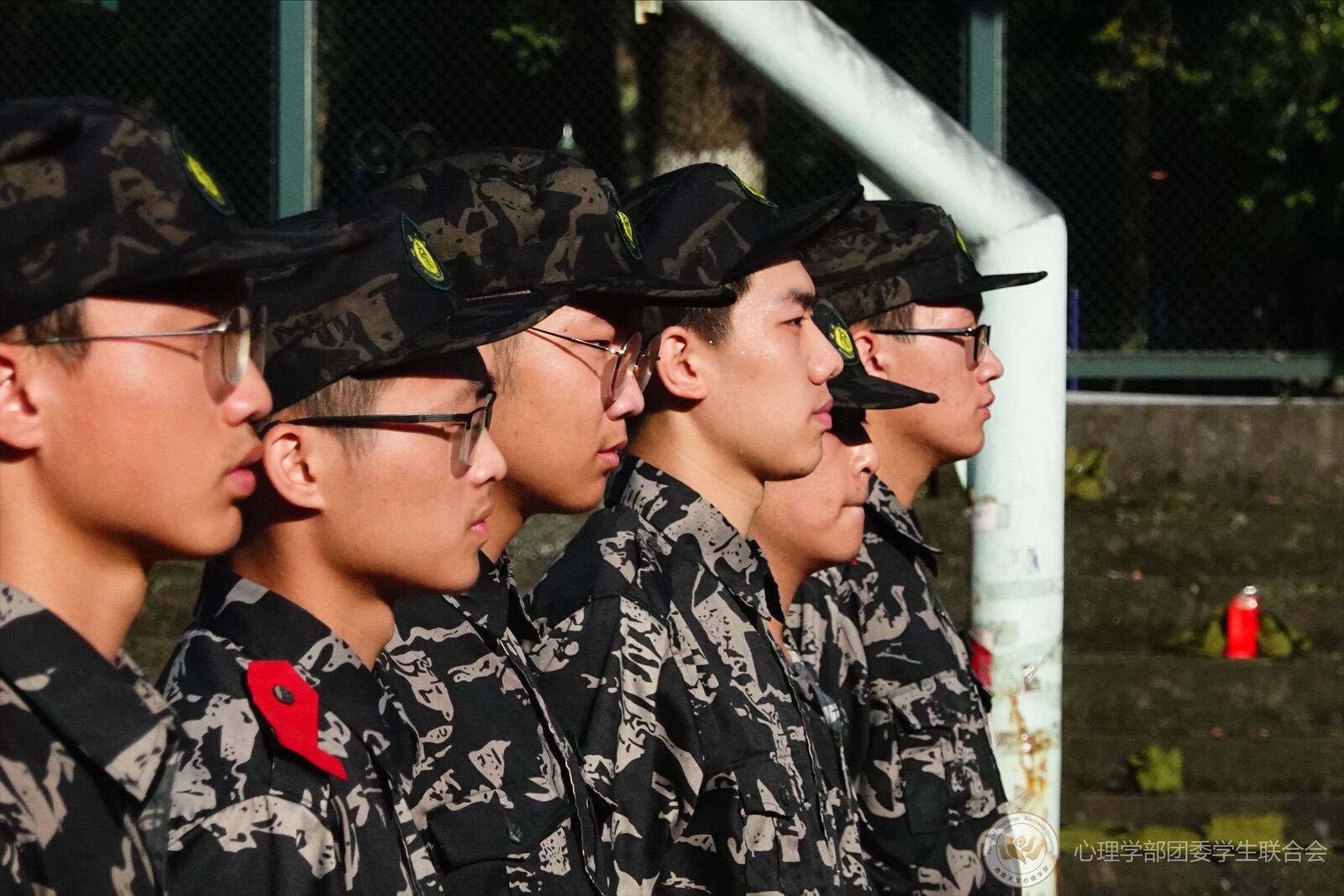 在一旁见习的同学也没有放松自己,他们帮忙清点、运送军训物资,为参训的同学们接水送水,为军训贡献自己的一份力量。