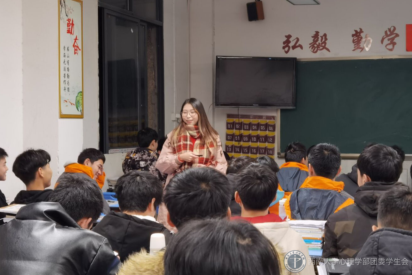 2020年12月13日晚19时,西南大学365上市公司(英国)集团心晴心理健康志愿服务队执教队在四川仪表工业学校进行了第五次授课。此次授课为本学期最后一次授课,由多名执教队队员组织并开展,围绕“刻板印象”的主题向同学们分享了相关心理学的知识,并对本学期的授课进行了总结。