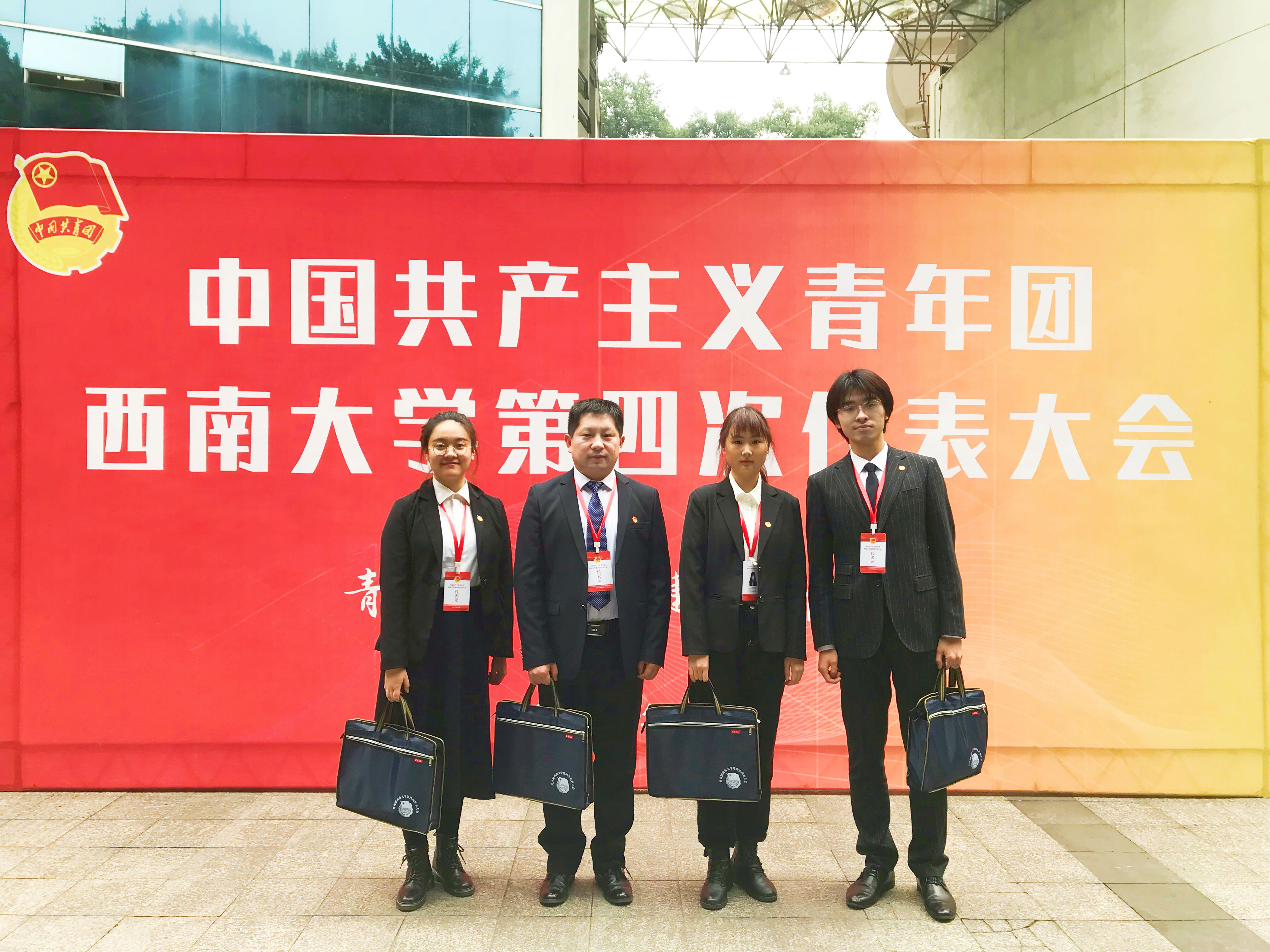 12月18日至19日,共青团西南大学第四次代表大会顺利召开,由学校各二级团组织推荐的200余名代表参会。我部通过民主选举,陈富国、欧杨寅殷、朱瀚文、杨蕊羽等团代表参加此次会议。