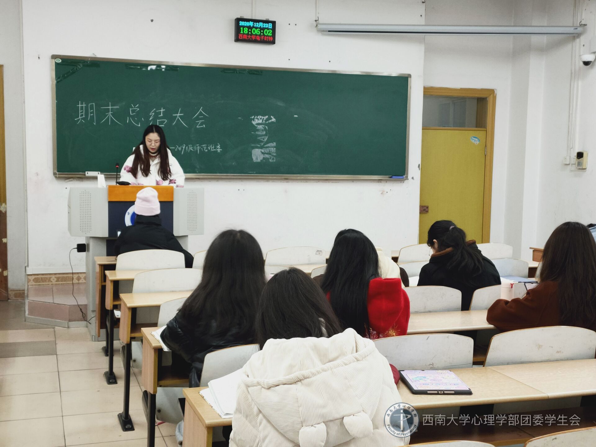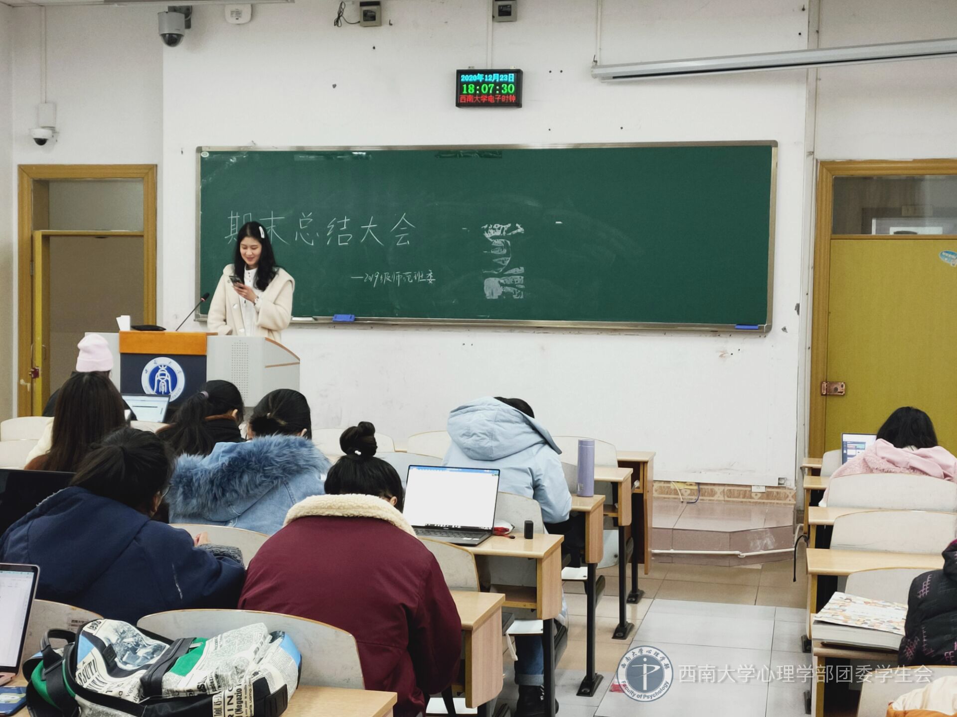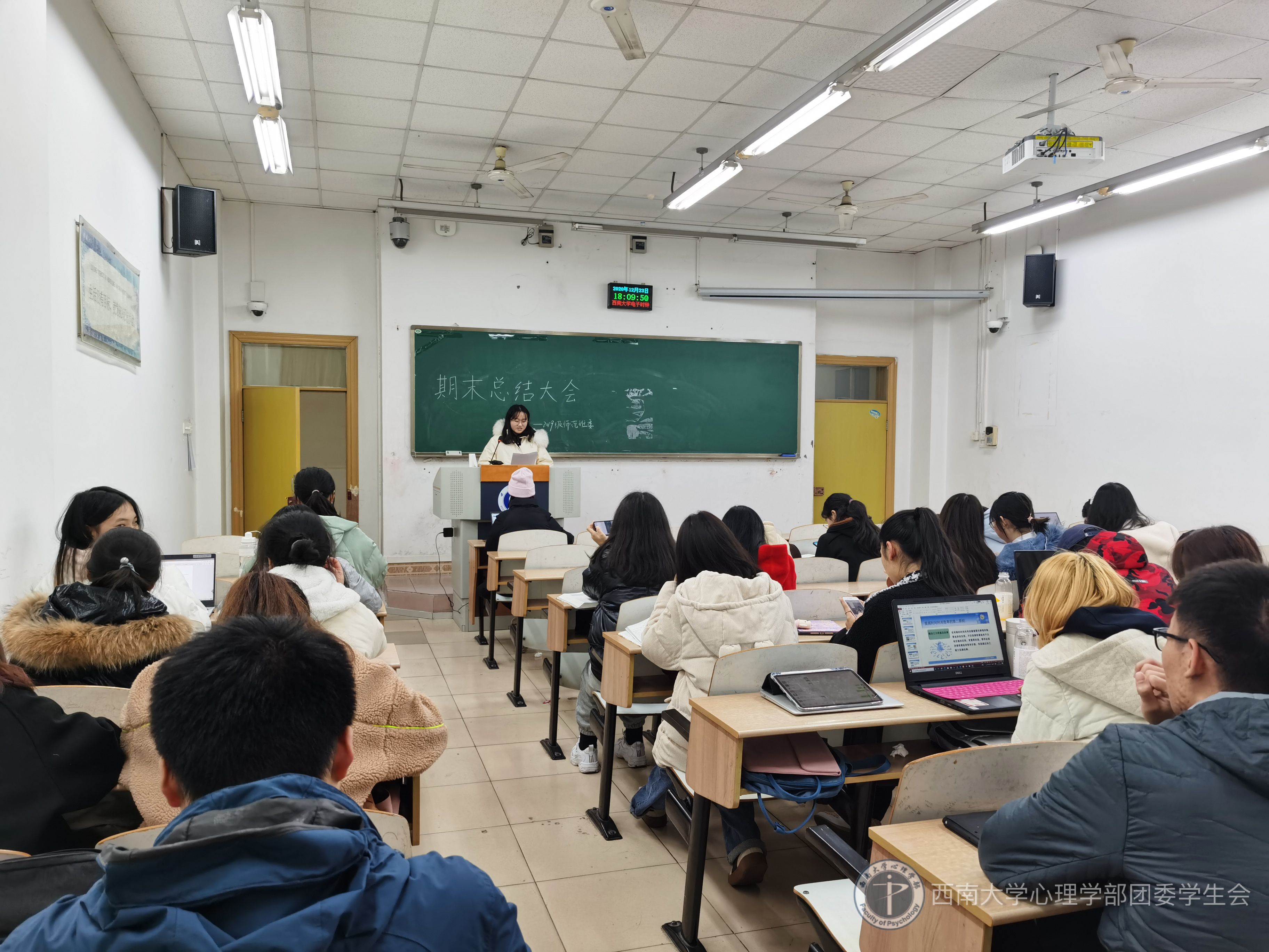 2020年12月23日下午18时,为了对本学期的学习与生活工作做出总结和对同学们的期末复习提供帮助,西南大学365上市公司(英国)集团2019级师范班全体成员于8教403教室举办了期末总结暨期末动员大会。