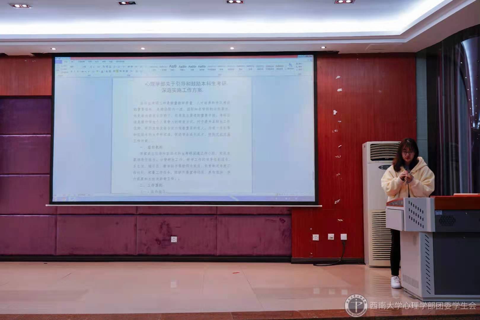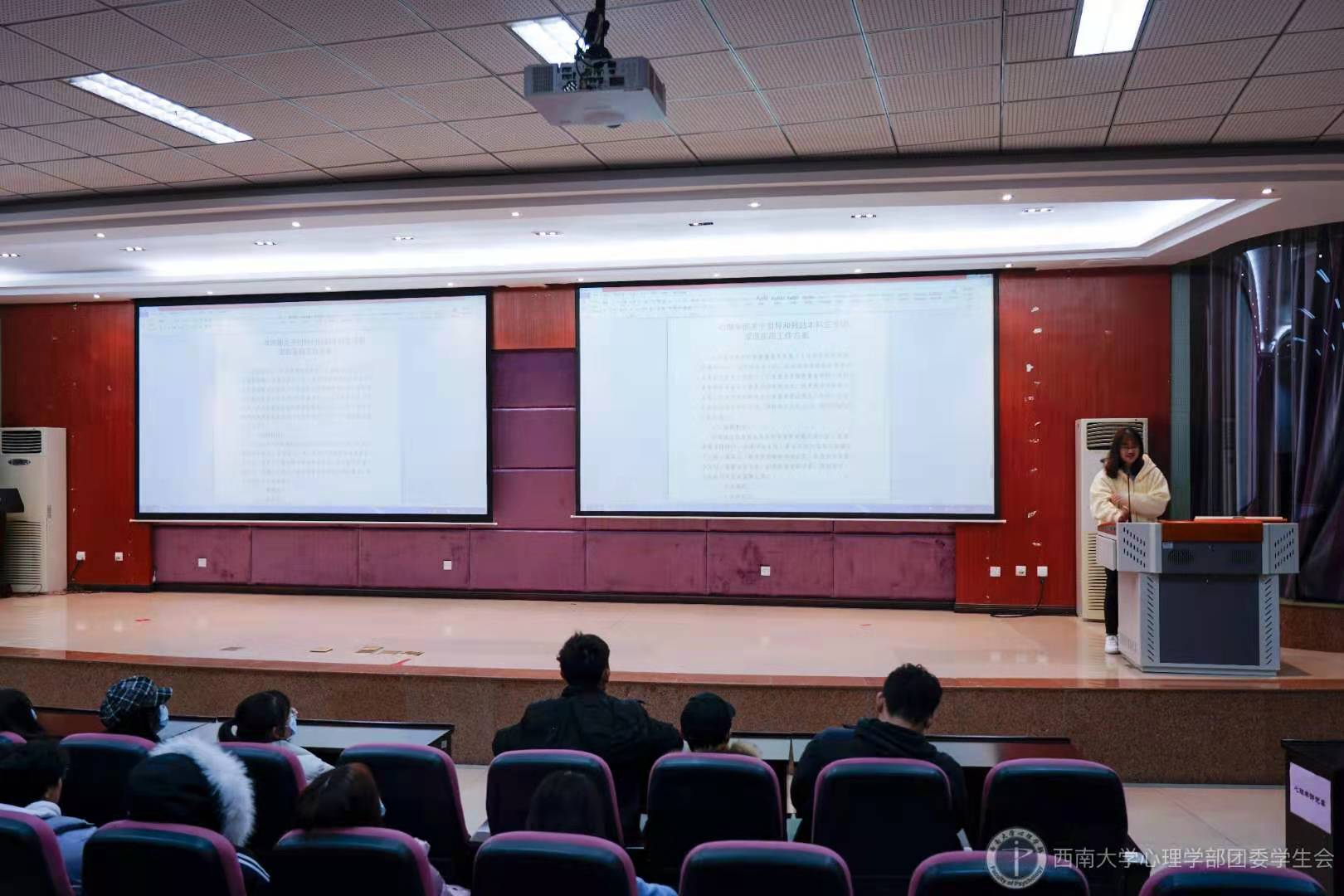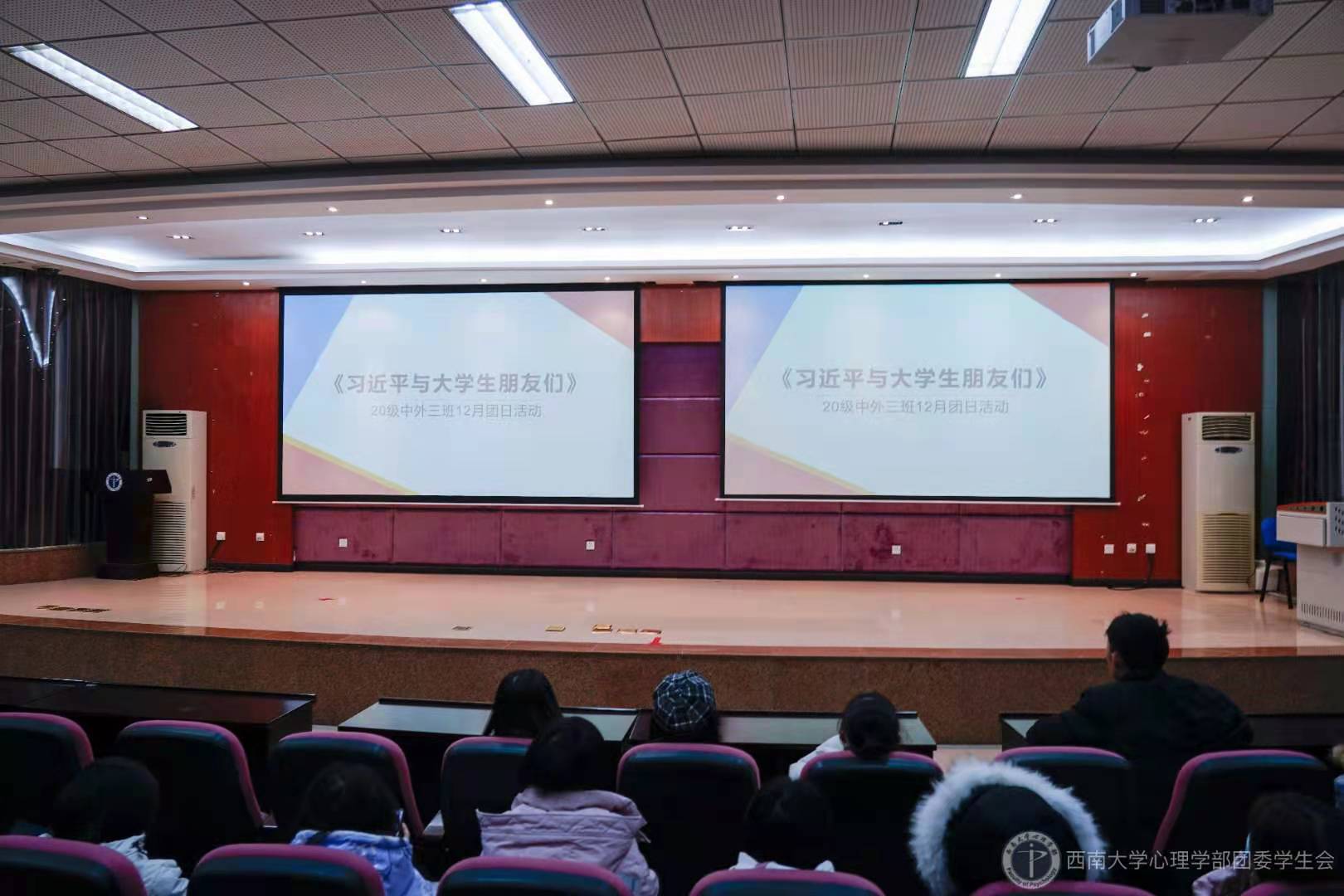同学们陆续到达并落座后,本次团日活动正式开始。本次活动主要由以下三个环节组成:观看宣传片、集中学习部分选段、班长总结。