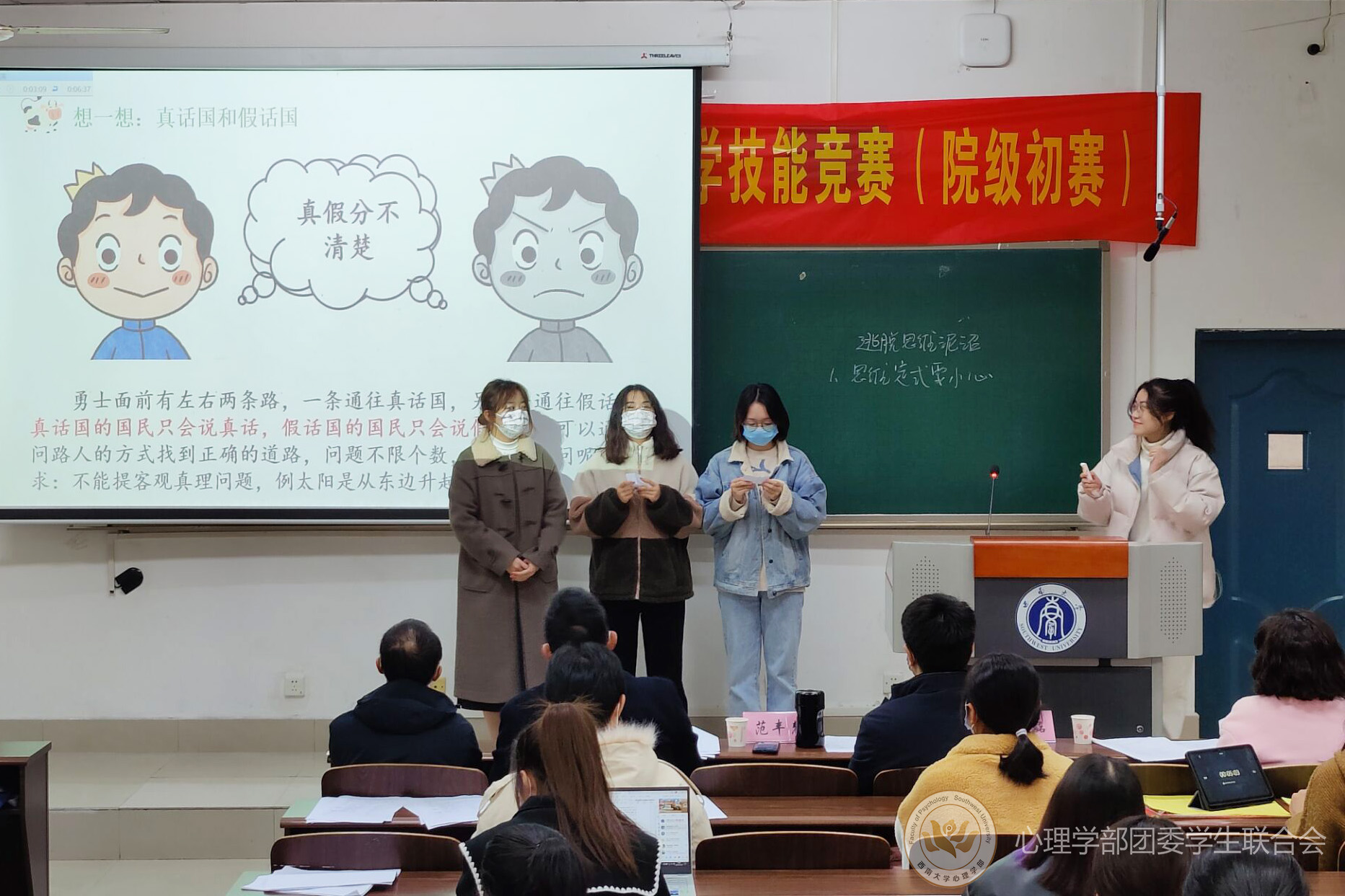 2021年11月13日上午9时,以“博观取约,厚积薄发”为主题的西南大学第十四届师范生课堂教学技能比赛在27教学楼0001教室顺利开展。此次活动旨在增强师范生综合素质、提高师范生课堂教学技能水平,协助同学们成长为优秀的教育工作者,为实现国家教育革新与中华民族伟大复兴奉献青春热血2021年11月13日上午9时,以“博观取约,厚积薄发”为主题的西南大学第十四届师范生课堂教学技能比赛在27教学楼0001教室顺利开展。此次活动旨在增强师范生综合素质、提高师范生课堂教学技能水平,协助同学们成长为优秀的教育工作者,为实现国家教育革新与中华民族伟大复兴奉献青春热血。