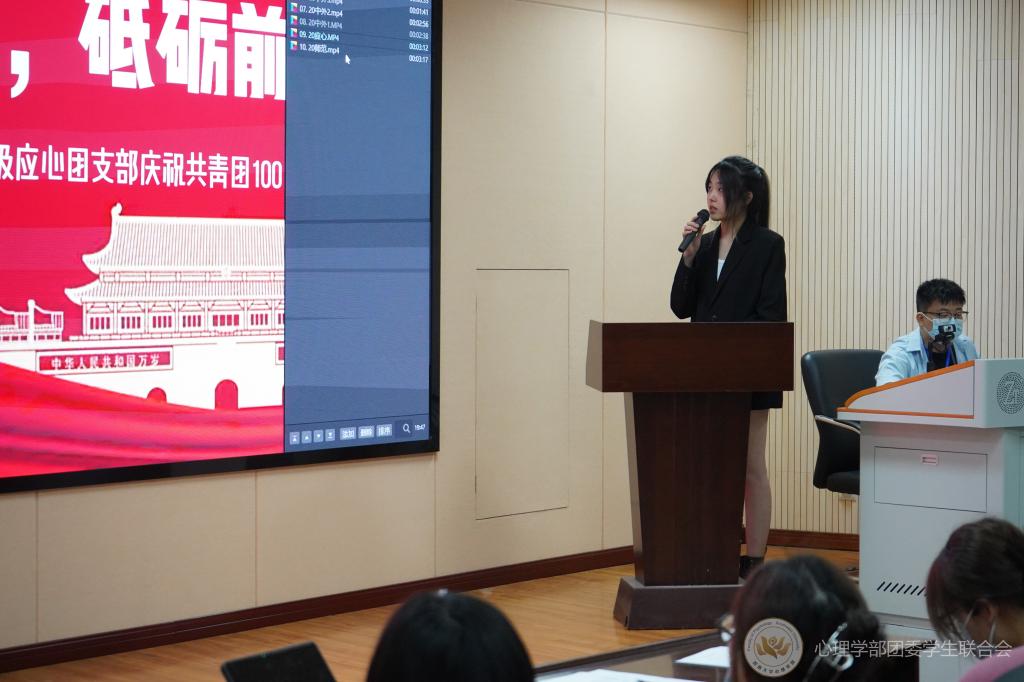 随后是团日活动设计讲解。2020级、2021级各支部团支书围绕“迎五四”“庆祝建团一百周年”等主题,自主设计了团日活动,并在QQ空间发表了说说。各年级累计点赞量第一的团支部的团日活动由团支书在活动现场进行讲解。
