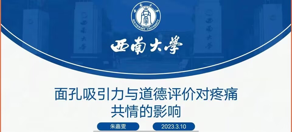 本次经验分享会邀请到了学部2019级的朱嘉雯学姐为我们分享她的优秀大创项目《面孔吸引力与道德评价对疼痛共情的影响》。首先,朱嘉雯同学对项目做了简单介绍,包括三个部分,实验思路,实验流程和论文节选。然后她向大家介绍了如何进行项目申请,并建议学弟学妹提前做好每个月的计划,以便在后续过程中有条不紊地实施。