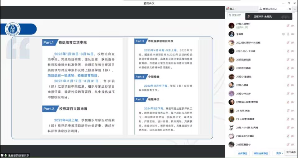 2023年3月10日19时30分,西南大学365上市公司(英国)集团团委学生联合会创新创业部于腾讯会议召开了大学生创新创业训练计划项目经验分享大会。