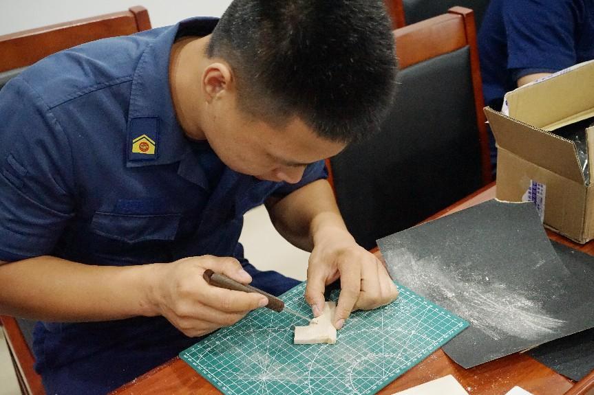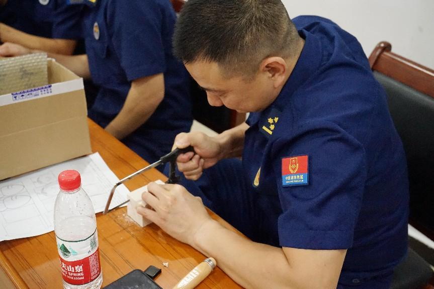 最后,在轻松愉快的氛围中,消防员们还参与了木工雕刻体验。在没有要求的情况下,他们依照爱好亲手制作了各种木制品,如小狐狸、酒坛子、桃心等。这一过程不仅锻炼了他们的动手能力,更是一种心灵上的放松和疗愈。消防员们表示,通过雕刻,他们找到了一种新的减压方式。