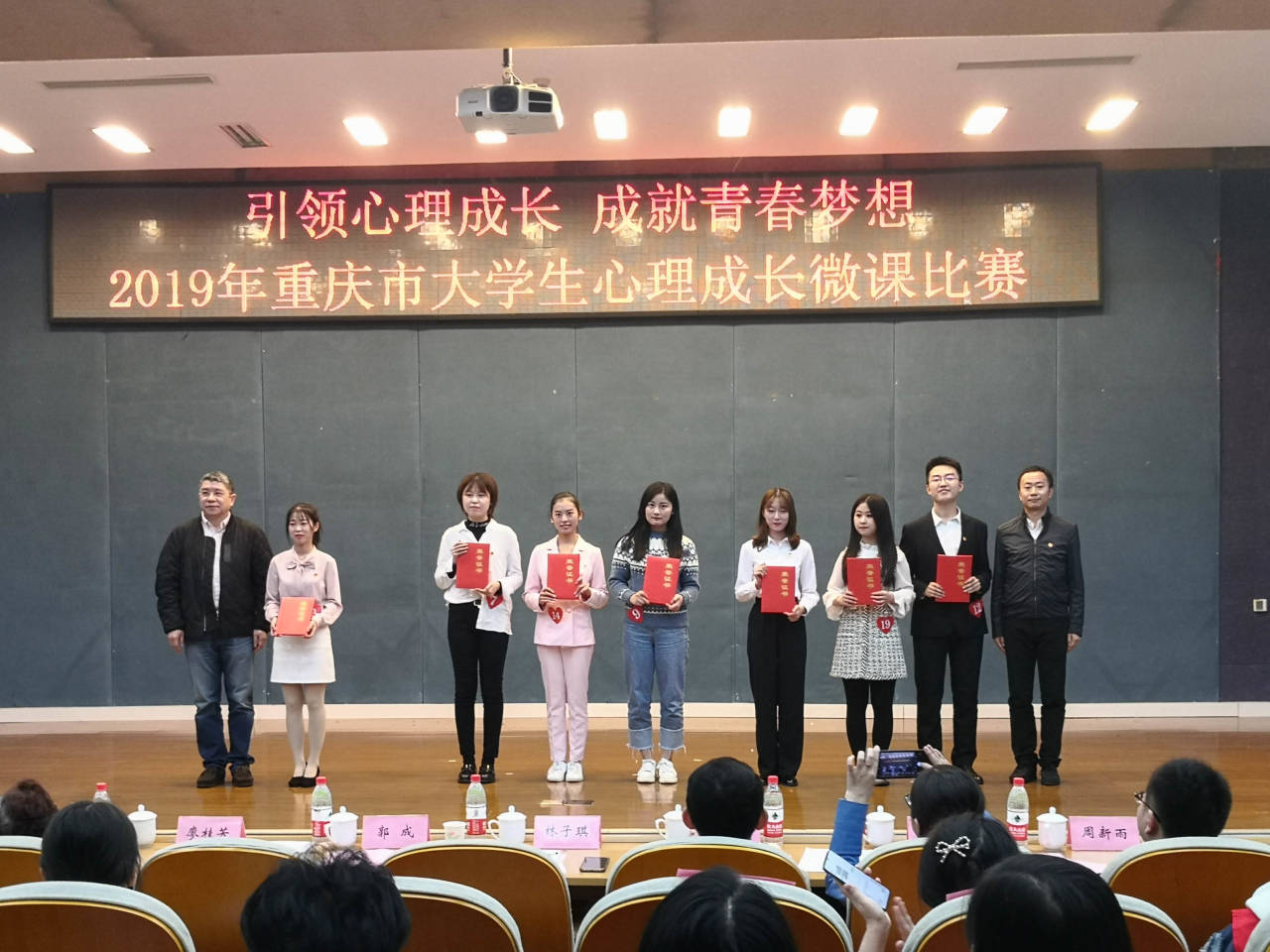 2019年11月2日,由共青团重庆市委员会主办、重庆市社会心理学会承办的重庆市大学生心理成长微课比赛在重庆医药高等专科学校圆满落下帷幕。大赛以“引领心理成长,成就青春梦想”为主题,关注当代大学生的理想信念与心理成长、科技发展与智慧人生。大赛从紧扣主题、重点突出、课件生动、表达清晰、教态端庄五个方面对选手的授课能力进行考察,团市委和重庆市社会心理学会的专家担任了大会评委。