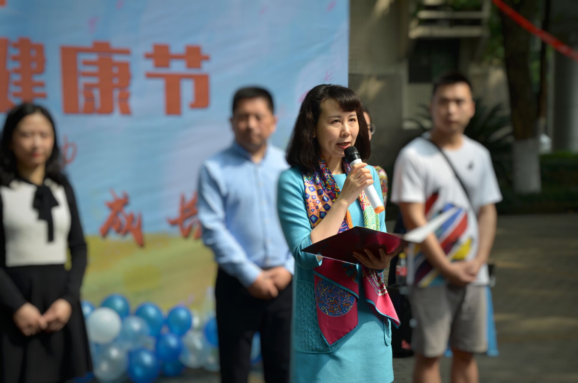 西南大学学生工作部副部长、心理健康教育与服务中心主任高德香老师致辞,她回顾了学校过去13届阳光心理健康节的总体情况,强调了本次心理健康节的主题,阐明了活动的意义,希望同学们拥有健康的心理,拥抱青春,做追梦的青年人。开幕式上,到场嘉宾为“最美微笑”获得者颁发了纪念奖品。