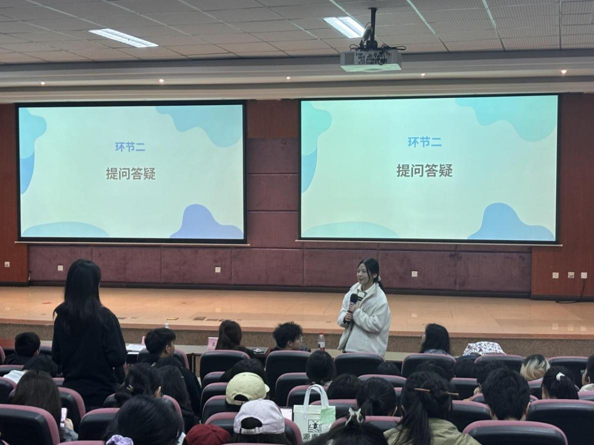 在热烈的掌声中,分享会进入提问答疑环节,许多同学踊跃举手,向分享嘉宾提出了很有价值的问题,比如大创项目该如何开始、路演答辩的技巧以及产品产出的难点等等,嘉宾耐心细致的解答,不仅破解了同学们的疑问,让同学们对创新创业有了更加清晰的认识,更点燃了同学们的创新创业热情,不少同学认真记笔记、拍照记录。