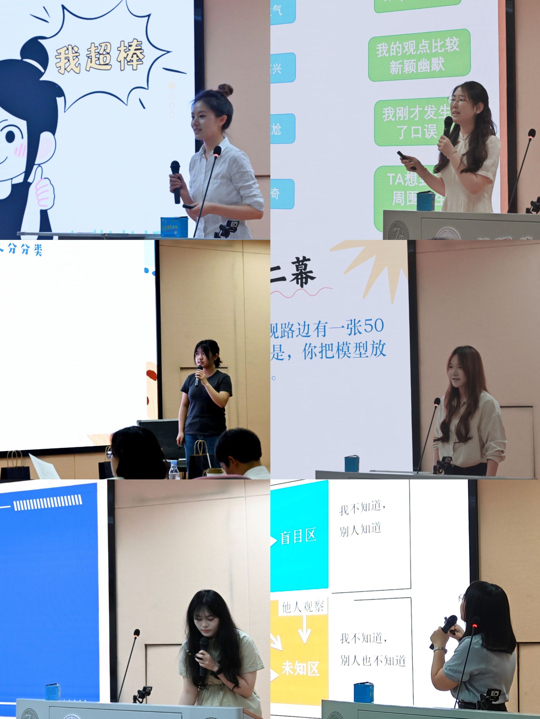 模拟授课环节,选手们各展所长,将理论融入生动实践。李欣颐以《破解挫折密码:从认知重构到逆风成长》为题,通过情景剧《班会风波》引出“固定型思维”与“成长型思维”的差异。结合“命运胶囊”案例分析,她引导学生运用成长型思维替换消极认知,并设计《抗挫行动计划表》强化实操。李欣颐总结道:“挫折不是终点,而是认知升级的起点。”于心凯的《读懂情绪,解锁调节ABC》聚焦情绪管理,以“路怒症”“考试焦虑”等社会案例导入,结合情绪日记绘制与ABC理论分组讨论,帮助学生理解“信念决定情绪”。在冥想体验环节,她通过“手握气球放气”的具象化引导,带领学生感受情绪平复的路径,并强调“调节情绪不仅是技能,更是终身修炼的智慧。”包靖华的《我的情绪维他命ABC》以阿尔伯特·艾利斯的情绪ABC理论为核心,通过“扫雷游戏”和“网红水豚”案例激发学生兴趣,结合“飞机模型被压坏”四幕情景剧,拆解“事件-信念-情绪”的逻辑链。课堂中,学生通过小组讨论辨别不合理信念,并练习用积极信念替代,最后通过“烦恼箱”匿名分享,强化自我觉察与互助氛围。赵翊汝的《中学生的压力管理》聚焦青少年心理痛点,以“压力圈圈图”引导学生识别压力源,结合冥想、呼吸调节(箱式呼吸法)和艺术疗法(曼陀罗绘画),帮助学生掌握实操技巧。课堂尾声,学生通过“抗挫行动计划表”制定个性化压力管理方案,赵翊汝总结:“压力是成长的催化剂,学会与它对话才能轻装前行。”向红欣的《团体中的“我”》基于贝尔宾团队角色理论,通过“一起来买菜”抱团游戏,引导学生思考自身在团队中的定位。结合《西游记》师徒角色分析,学生分组讨论自身特质并接受同伴匿名反馈,最终定位自己属于“行动派”“社交派”或“思考派”。课堂强调“团队多样性”,鼓励学生“在协作中发现独一无二的价值”。路智开的《认识自我,悦纳自我》以乔哈里视窗理论为框架,通过漫画导入引发学生对“自我否定”的共鸣。课堂中,学生通过匿名互评缩小“盲区”,练习“yes…but”积极赋义法,并撰写“给自己的告白信”,学习以自我关怀替代批判。路智开总结:“不完美是人性常态,爱自己才能激发向上的力量。”