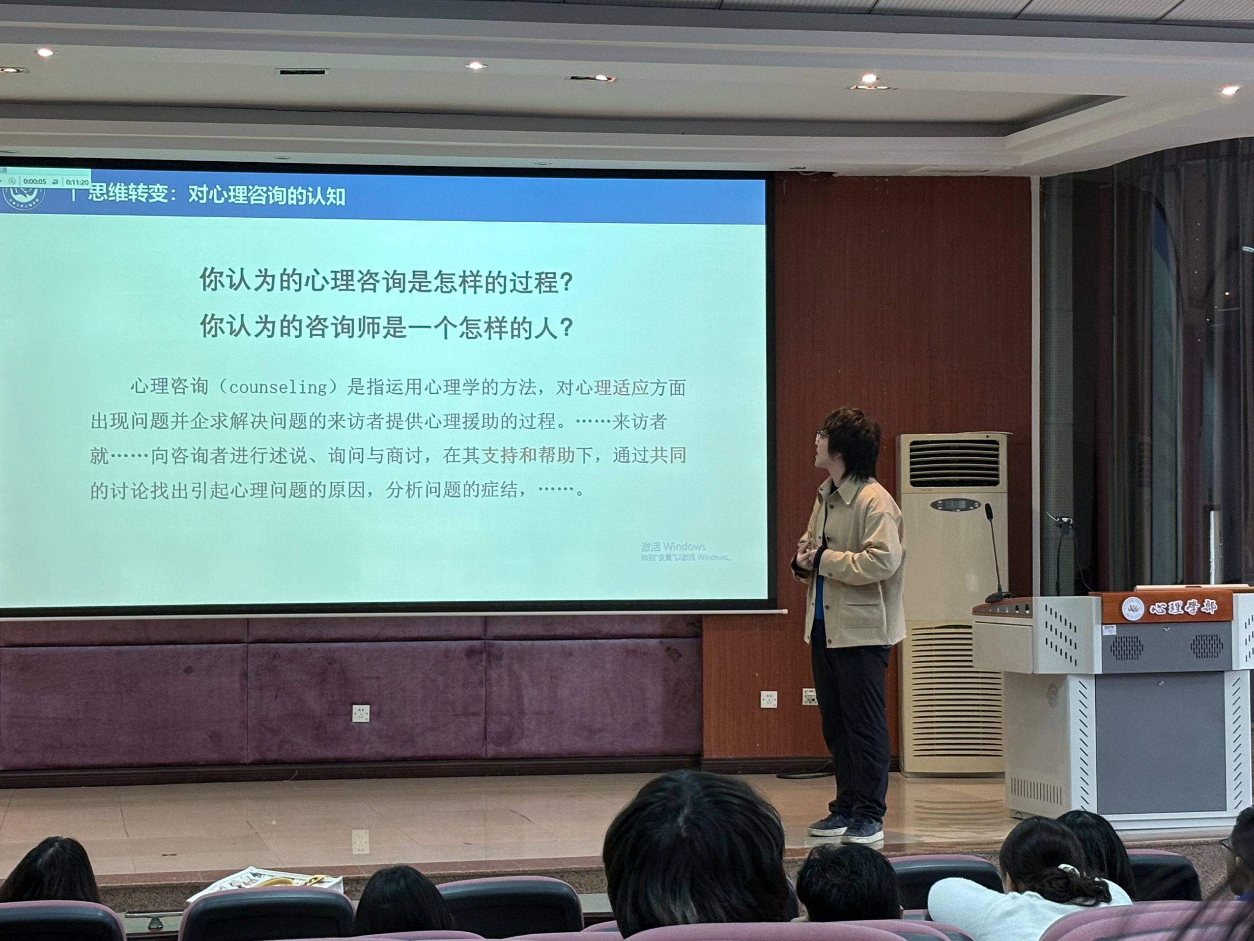 在关系构建方面,讲座深入解析了罗杰斯提出的咨询关系三要素:真诚一致、深度共情与无条件积极关注。真诚一致强调咨询师应避免技术化表演,保持真实自我的在场;深度共情要求能够进入来访者的情感世界而不加以评判,并清晰区分共情与同情;无条件积极关注则意味着超越价值条件的局限,为来访者建立安全且充满信任的空间。现场还通过具体案例,演示了“情感反映”技术如何在实际咨询中发挥作用,指出积极共情比简单的安慰更能触及来访者的核心需求。