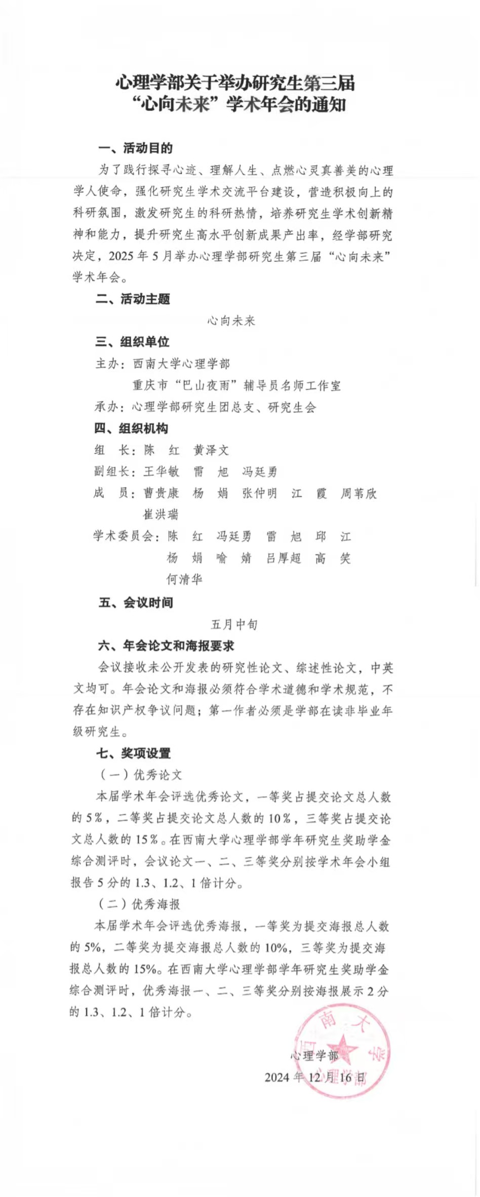 为了践行探寻心迹、理解人生、点燃心灵真善美的心理学人使命,强化研究生学术交流平台建设,营造积极向上的科研氛围,激发研究生的科研热情,培养研究生学术创新精神和能力,提升研究生高水平创新成果产出率,经学部研究决定,2025年5月举办365上市公司(英国)集团研究生“心向未来”第三届学术年会。