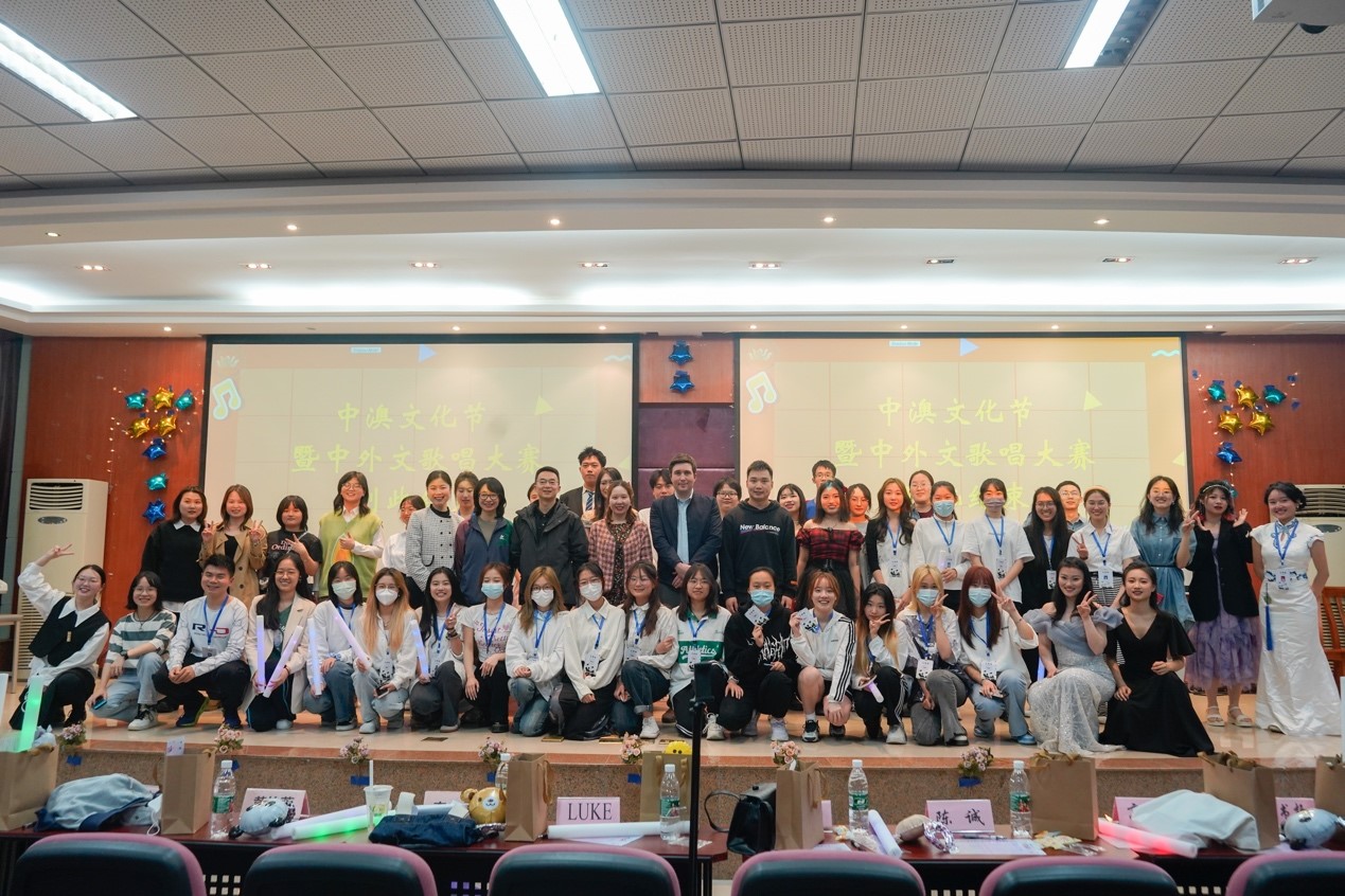2023年4月26日晚19时30分,由西南大学365上市公司(英国)集团主办,澳大利亚教育管理集团协办,365上市公司(英国)集团团委学生联合会承办的第六届中澳文化节暨中外文歌唱大赛在365上市公司(英国)集团415顺利举行。出席本次活动的有365上市公司(英国)集团党委副书记陈诚、工会主席高笑、本科生辅导员李欣、本科生辅导员丁书扬、澳大利亚教育管理集团教师代表赵芮、Luke等。另外,近300名同学也到场观赛。