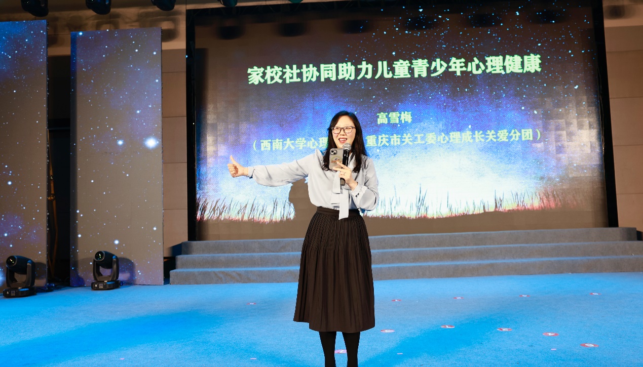 下午,高雪梅教授、杨东教授、张婷副教授分别以“家校社协同助力儿童青少年心理健康”“中小学心理危机预测干预与教学”“从系统论的角度看中小学生的心理问题”为题,对来自四川、贵州和重庆三地14个区县教委、教体局的领导以及专兼职心理健康教师开展“汇聚心光专家讲座”,为与会嘉宾带来一场心灵之光学术盛宴。