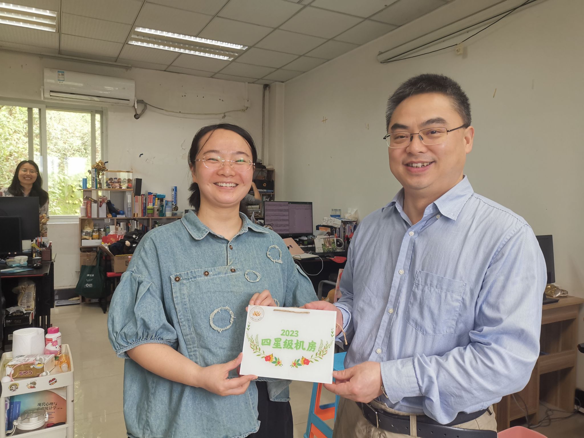 此外,对于在上学期机房安全与卫生管理中表现优异的十五个机房,王华敏和雷旭共同为其授予了“星级机房”挂牌,以期鼓励学生们继续维护机房安全,落实卫生管理。