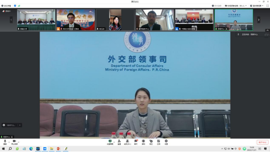 安晓姗代表外交部领保中心热烈祝贺“平安留学,从心开始”项目开展一周年。她强调党和国家高度重视留学人员安全问题,领保中心也积极贯彻党和国家的政策,切实维护海外中国公民的安全权益,为海外中国公民积极提供平台与帮助。目前留学生数目庞大,诈骗等安全问题频出,西南大学为海外留学生提供的心理健康干预活动是最好的预防与保护。用新颖的形式和生动的内容,并结合专业化的教师团队与针对性强的一对一心理咨询,把对留学生的心理关爱落到实处。期望将此项目不断拓展并继续坚持,形成长效机制,发挥更大的作用。
