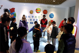 志愿者带领小朋友进行暖身小游戏