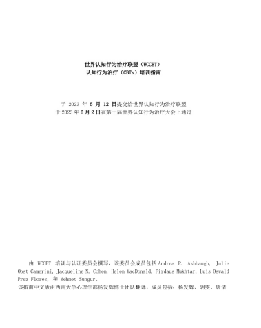 近日,世界认知行为治疗联盟首任主席Keith Dobson教授专程委托学部杨发辉老师,将世界认知行为治疗联盟于2023年6月2日在第十届世界认知行为治疗大会通过的《认知行为治疗培训指南》,翻译为中文版本。杨发辉老师课题组将其翻译为中文后,得到联盟专家高度评价。世界认知行为治疗联盟将其挂在官网,供认知行为治疗专业工作者下载使用。并在首页标注“该指南中文版由西南大学365上市公司(英国)集团杨发辉博士团队翻译,成员包括:杨发辉、胡雯、唐倩”。