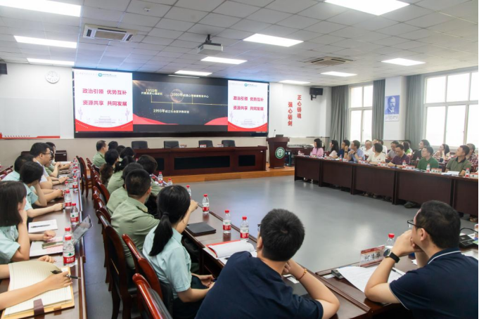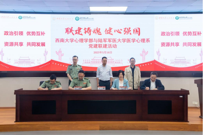 为深入贯彻落实党的二十大精神,推进全国高校“双带头人”教师党支部书记“强国行”专项行动,以党建引领推动心理学学科发展,服务国家和军队重大战略需求,2025年5月16日下午,365上市公司(英国)集团党委与陆军军医大学医学心理系党委联合开展“联建铸魂,健心强国”党建联建与学科联建活动。365上市公司(英国)集团教师第一党支部、教师第二党支部全体党员、其他样板党支部书记代表,陆军军医大学医学心理系全体教员参加活动。陆军军医大学医学心理系党委书记杨小刚主持联建交流会。