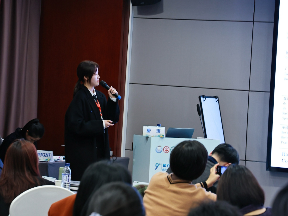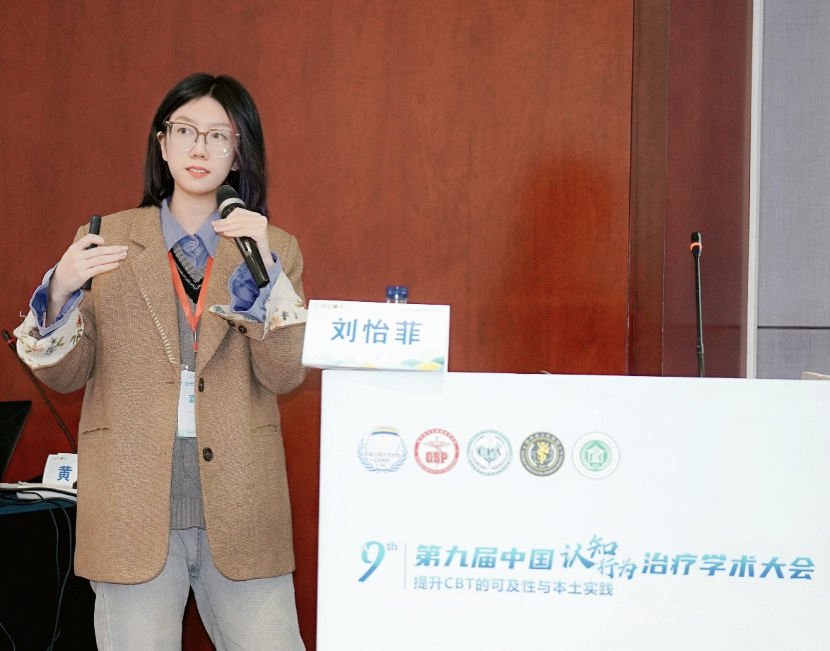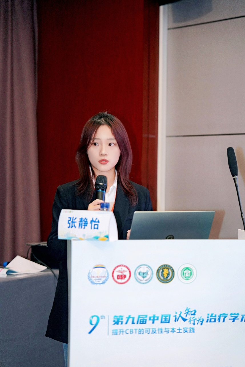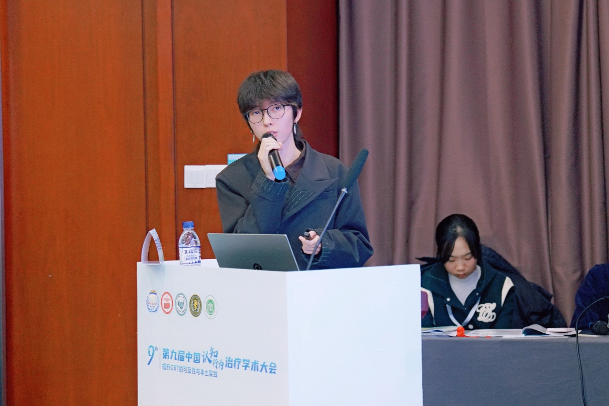 在“CBT与中国文化”专题会中,2024级应用心理临床与咨询方向硕士研究生刘怡菲作了题为《立象尽意:〈庄子〉中的意象研究及给认知行为治疗中国化带来的启示》的报告。她通过系统梳理《庄子》中的意象表达,归纳其主题与规律,探索将传统意象智慧融入认知行为治疗的本地化干预策略,助力激活个体的内在资源与积极心理力量。