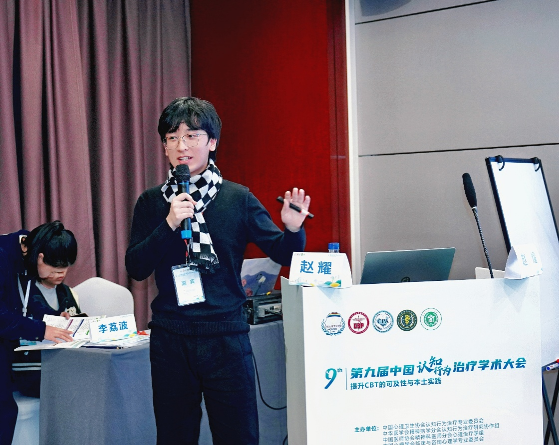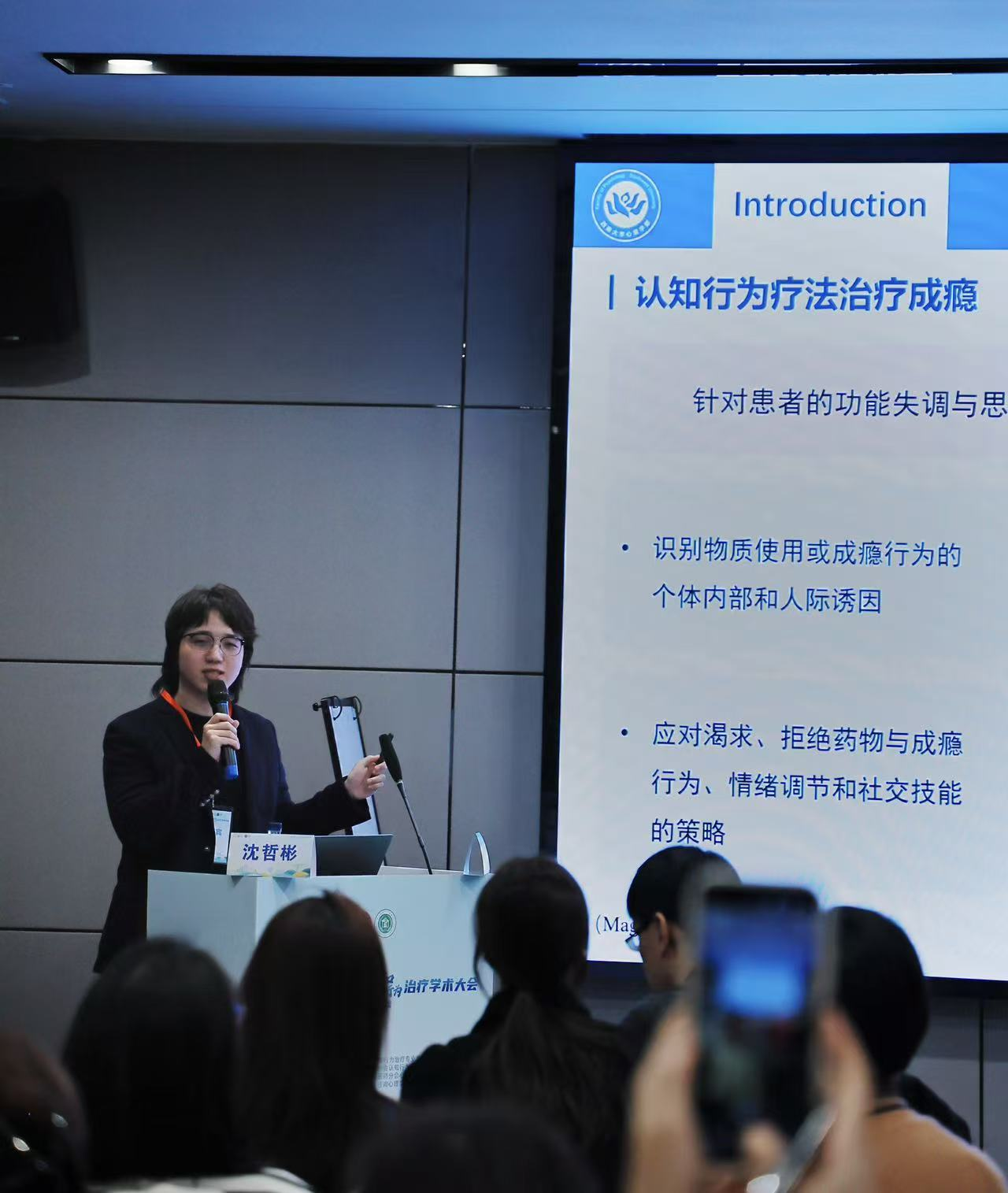 在“基于意象的认知行为治疗”专题会上,2024级应用心理临床与咨询心理学硕士研究生沈哲彬与2025级应用心理临床与咨询心理学硕士研究生赵耀合作报告了《基于心理意象的干预在成瘾治疗当中的有效性:一项整合性综述和元分析》,系统回顾相关临床研究,评估意象干预在成瘾行为中的跨诊断疗效。