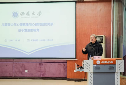 由西南大学邵景进教授主持,蒲靖钰以青年大学生为对象,结合行为实验与脑电(ERP)技术,揭示了音乐时空形态影响情绪面孔识别的神经机制;韩嘉钰关注早期青少年,通过潜增长模型与纵向中介模型,探讨了压力知觉在亲子关系与抑郁症状间的纵向中介作用;代宇航基于固定样本纵向设计,考察了中国儿童群体中抑郁与孤独感的纵向发展关系。三场报告系统覆盖了从儿童到青少年的多个发展阶段,为学校心理健康工作的推进提供了扎实的理论依据与干预参考。