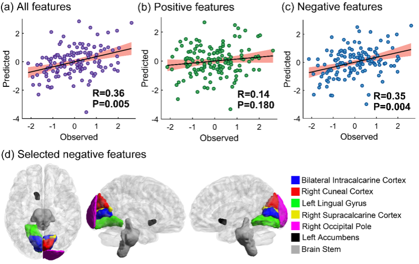 先前研究表明,海马作为记忆编码、存储、表征的核心脑区,在主动抑制的过程中,个体通过激活控制系统,导致海马激活降低,从而导致其功能受到破坏,最终导致了遗忘。然而成功的记忆回溯不仅依赖于海马激活,也依赖于海马于其他脑区之间的交流,例如新皮层、感知觉皮层等。因此,本研究利用记忆抑制范式(Think/No-Think)探讨了海马和感知觉皮层的联动在记忆控制中的重要作用。通过将主动抑制过程中功能连接的改变(Generalized Psychophysiological Interaction)与机器学习方法相结合,探究了主动抑制过程中海马功能连接的改变在记忆控制中的重要作用。结果表明:海马与视觉皮层、海马与伏隔核功能连接的降低能够有效的预测个体的记忆控制能力。研究还通过控制一系列可能对预测效率产生影响的因素——头动、大脑分区、不同的交叉验证策略、不同建模方法,表明了预测效果具有稳定性。这一研究表明,主动的抑制不仅仅降低海马激活,也会重塑破坏海马与其他脑区之间的交流,从而达到主动遗忘的目的。