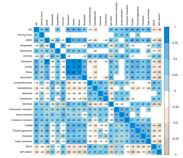 图1 游戏成瘾心理风险因素的相关矩阵图