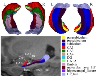 图1.海马体亚区的结构包括12个亚区