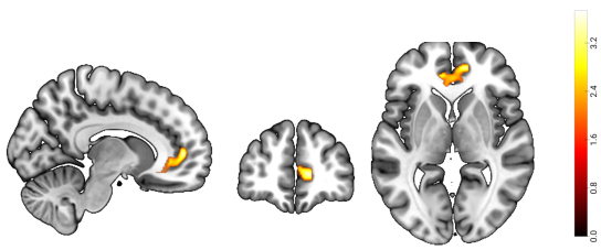 图2 未来自我连续性与右侧腹内侧前额叶的灰质体积呈显著正相关