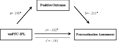 图4 预期想象正性结果完全中介脑区间功能连接对拖延行为的影响