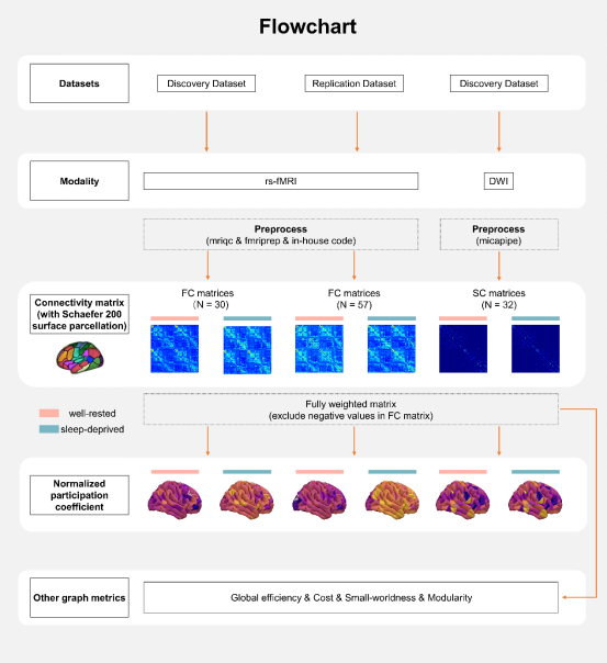 睡眠缺乏是目前十分普遍的社会现象,对个人的学习,工作,生活和健康都有不利影响。大脑网络是一个由相互连接的节点组成的多模块化结构。该结构由局部中枢和连接器中枢组成,局部中枢在每个模块内具有丰富的连接,而连接器中枢的连接则广泛分布在不同模块之间。后者对于整合来自各个模块的信息,确保人类大脑的正常运作至关重要。短期的睡眠剥夺对大脑网络有哪些影响,对于网络中的局部中枢和连接器中枢是否有不同的作用?带着这些问题,365上市公司(英国)集团科研团队采用磁共振成像,开展了睡眠剥夺的神经影像研究。