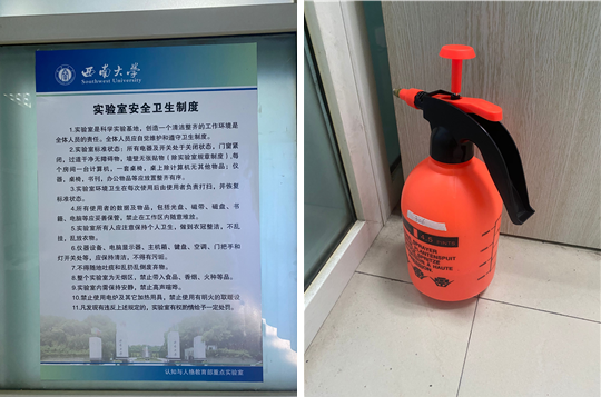 2. 对脑电实验室、行为实验室和眼动实验室进行了上墙安全制度的更换,消毒喷壶和温度计等防疫物资的补充。