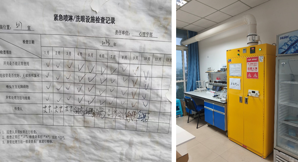 发现的安全隐患问题已提醒相关负责人及时检查并登记,现已整改完成。另外,完成了实验室试剂柜通风系统的安装。