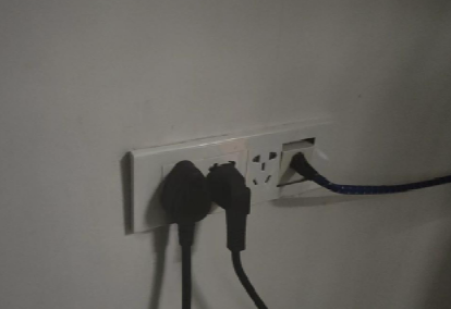 实验室内有一个插座损坏,存在漏电安全隐患。