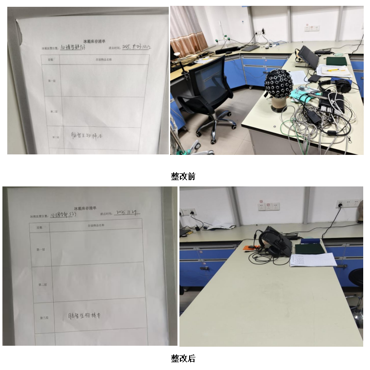 1.及时联系实验人员将实验耗材进行归位整理,更新了冰箱库存清单。实验室负责人再次对实验室人员进行了安全教育,隐患整改完成。